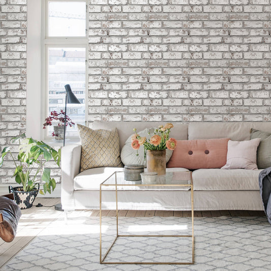 3D Whitewash Brick Wall Panels Peel and Stick