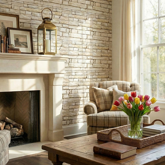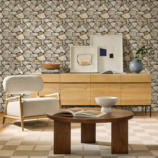 3D Earth Tones Fieldstone Wall Panels Peel and Stick
