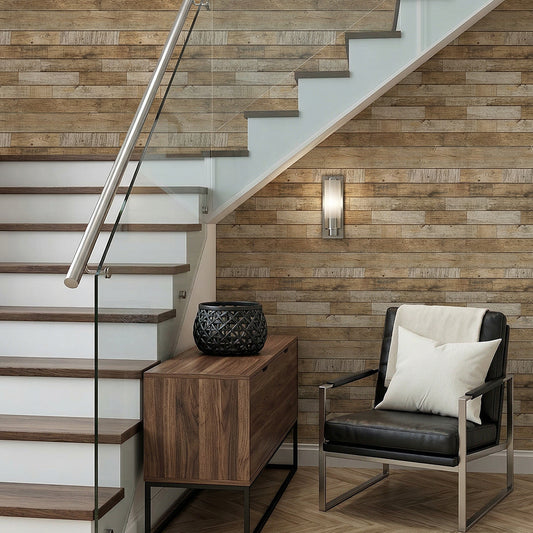 3D Rustic Brown Wood Wall Panels Peel and Stick