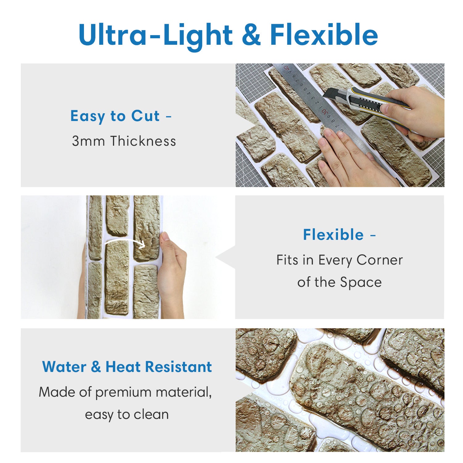 - Stunning 3D Embossed Texture: Realistic 3D surfaces perfectly simulate various real decorative tiles and are lightweight and flexible.