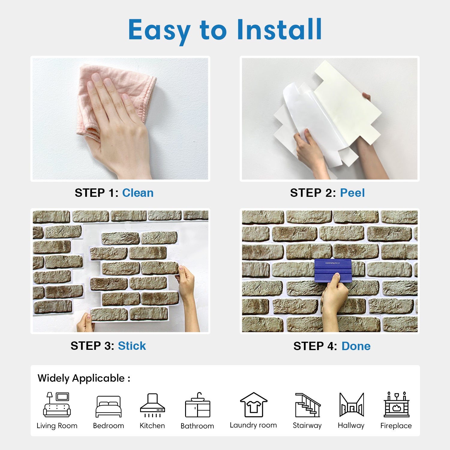 Widely Applicable: Living Room, Bedroom,Peel and Stick Brick Backsplash kitchen, Bathroom, Laundry Room, Hallway, Office, RV/Camper, et.
