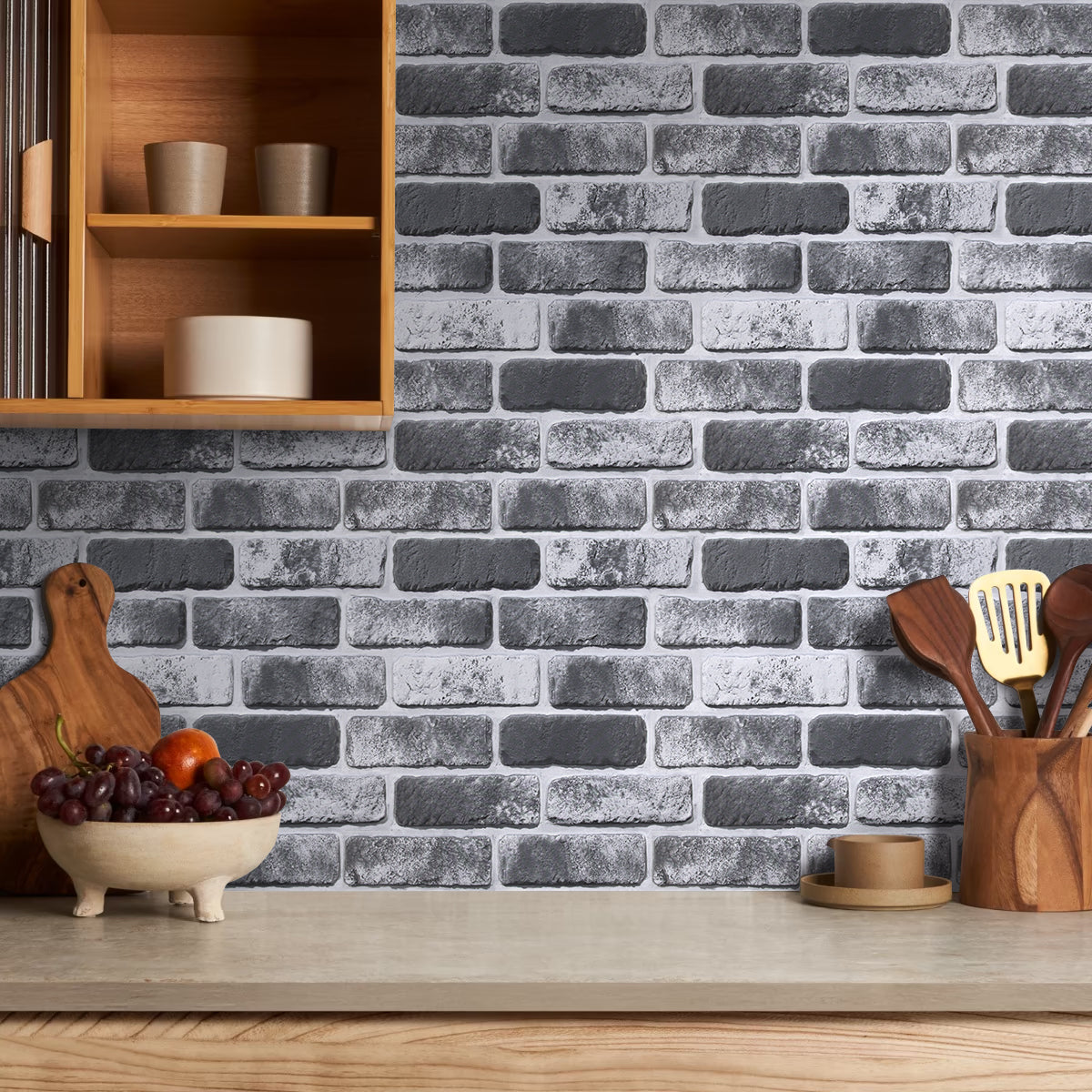 Transform Your Space with 3D Grey Black Whitewash Brick Wall Panels - Peel and Stick