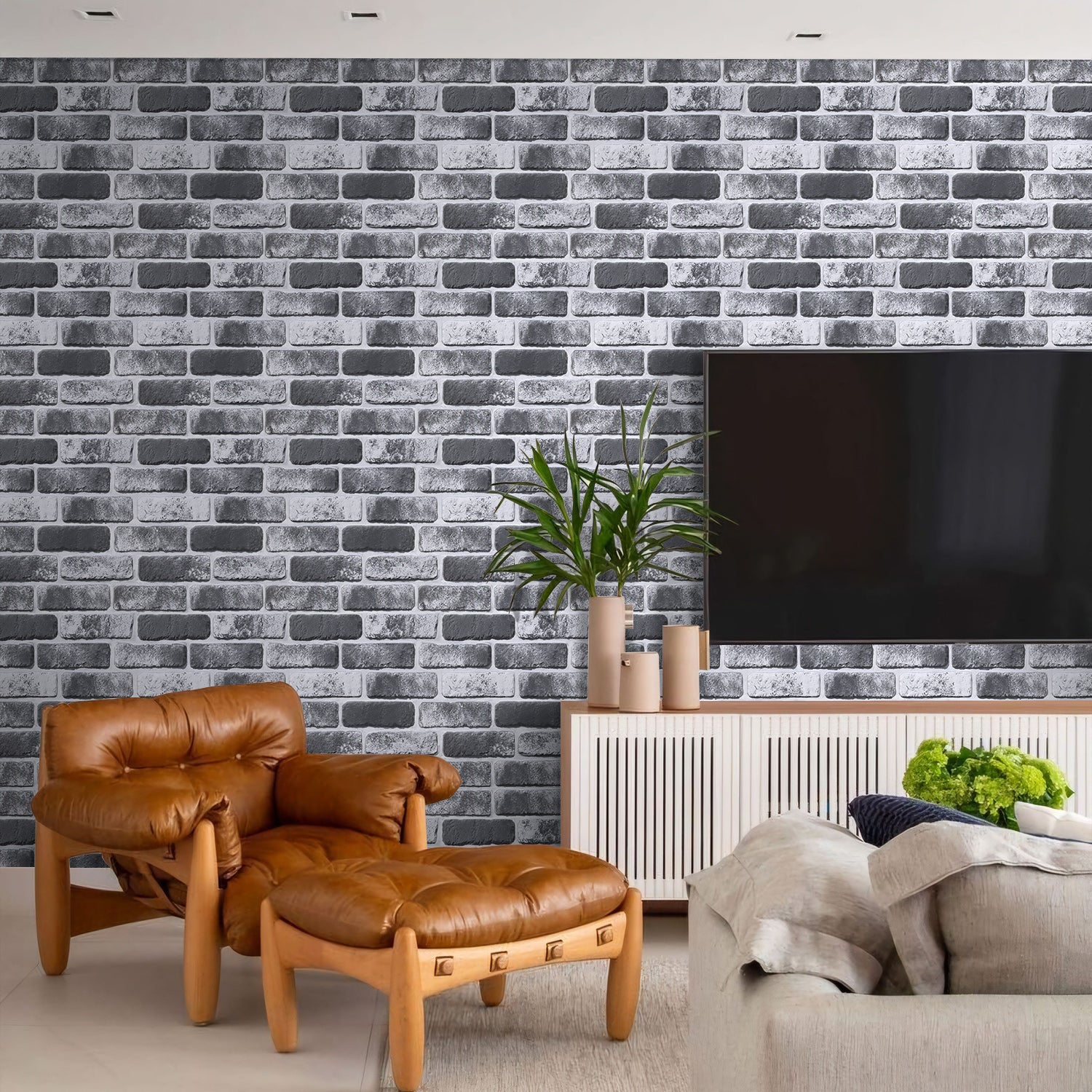 3D Grey Black Whitewash Brick Wall Panels Peel and Stick