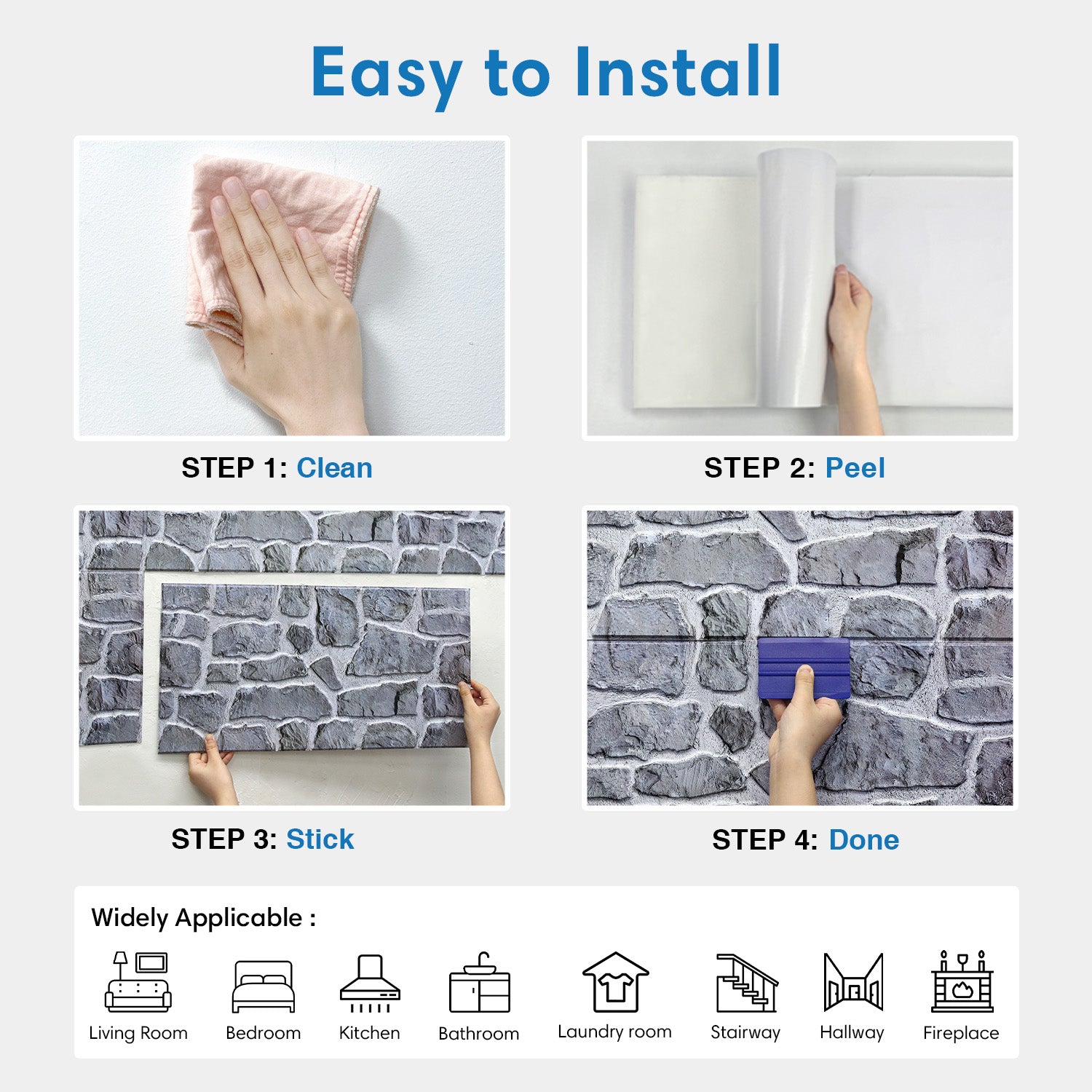 - Widely Applicable: Living Room, Bedroom,Peel and Stick Brick Backsplash kitchen, Bathroom, Laundry Room, Hallway, Office, RV/Camper, et.