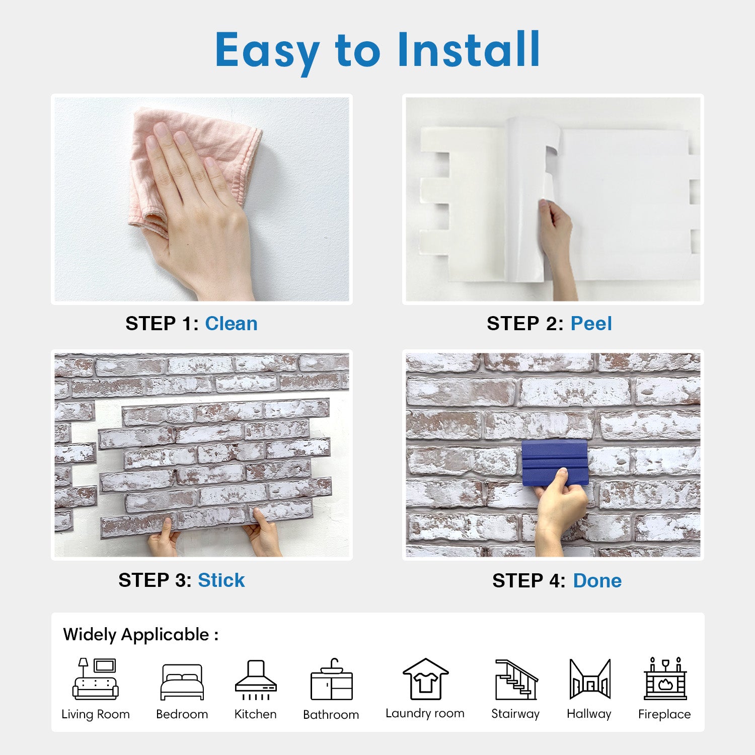 - Widely Applicable: Living Room, Bedroom, Peel and Stick Brick Backsplash kitchen, Bathroom, Laundry Room, Hallway, Office, RV/Camper, et.