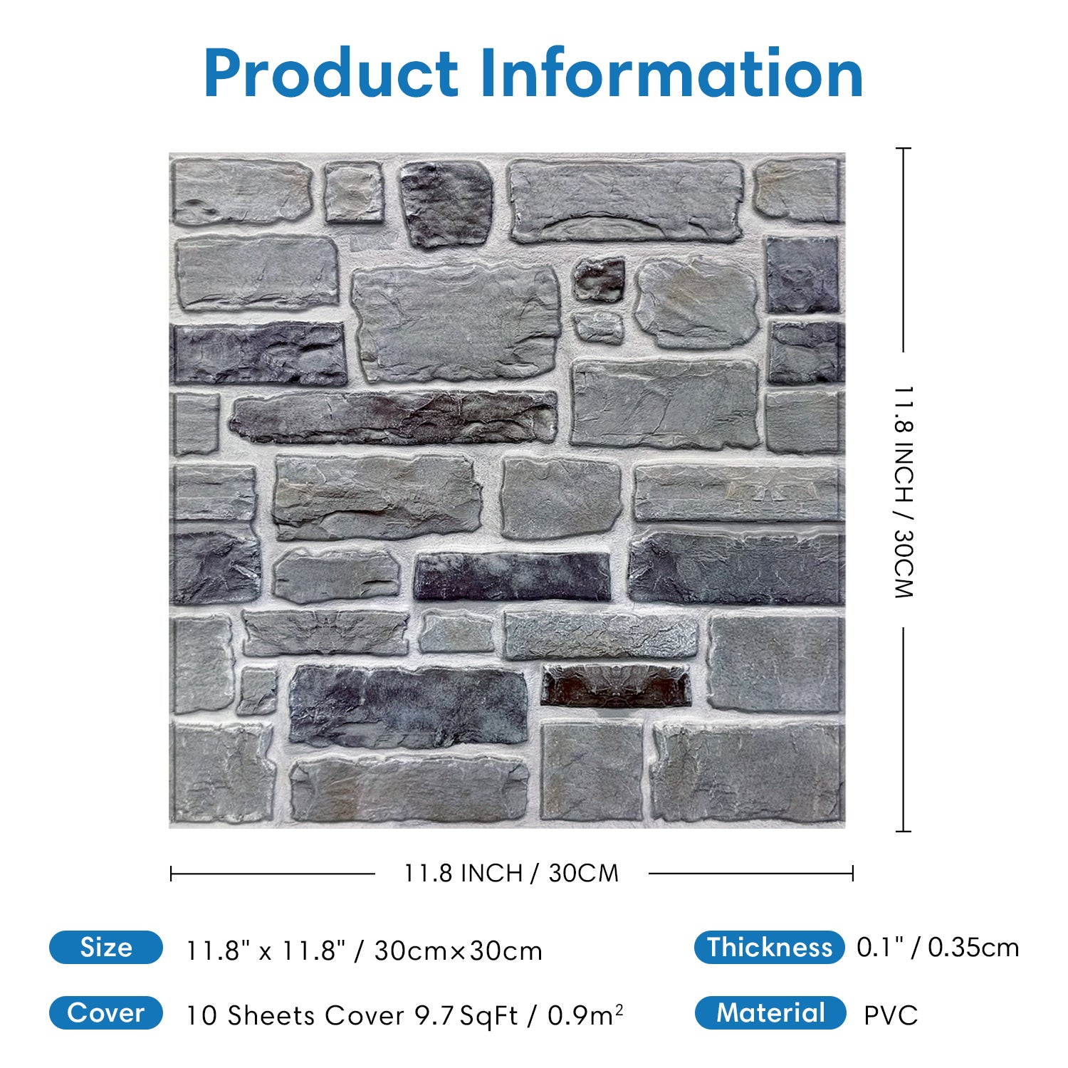 3D Smoke Rustic Stone Wall Panels Peel and Stick - Effortlessly Create a Natural, Rustic Look