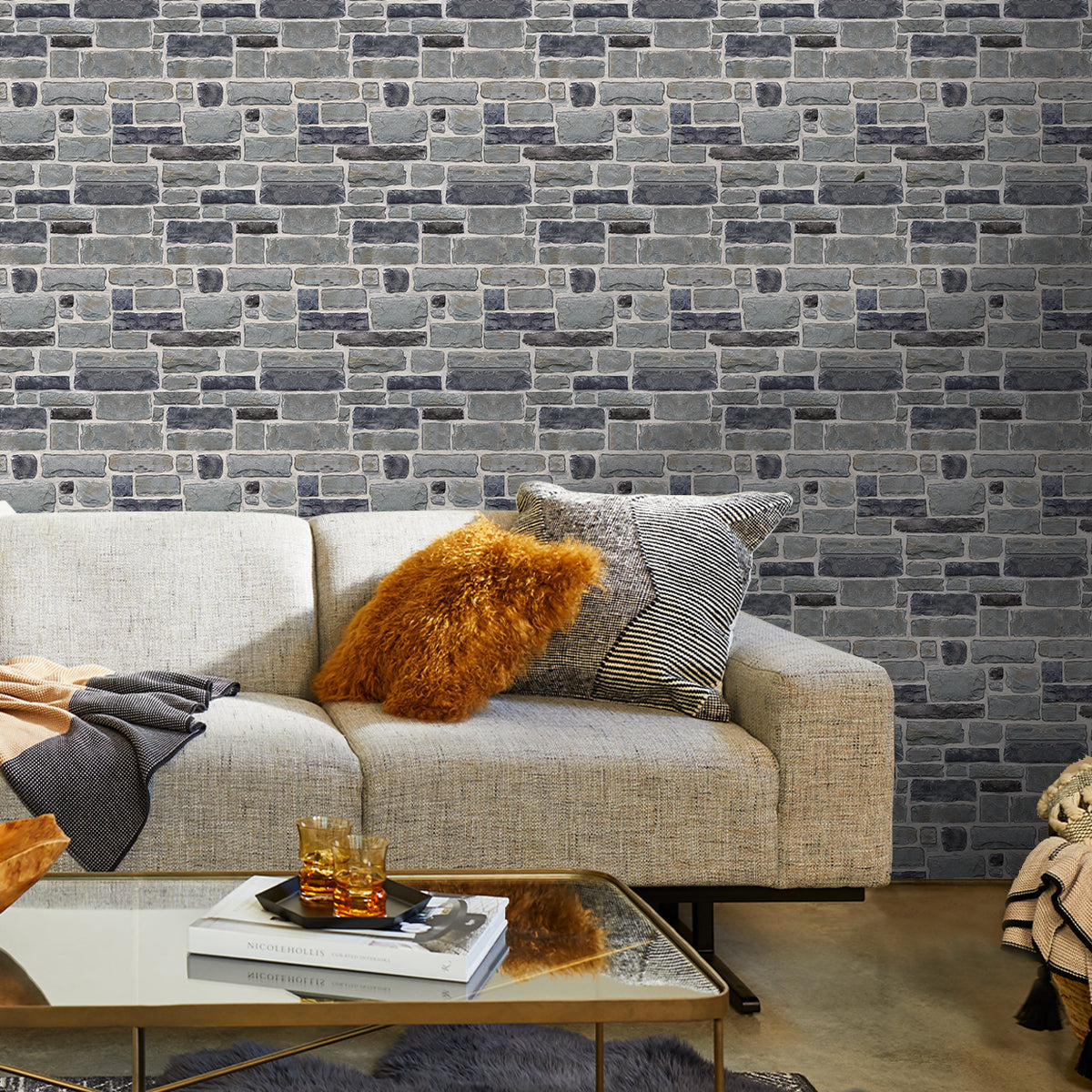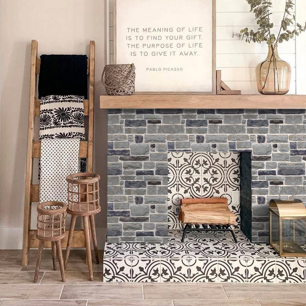 3D Smoke Rustic Stone Wall Panels Peel and Stick
