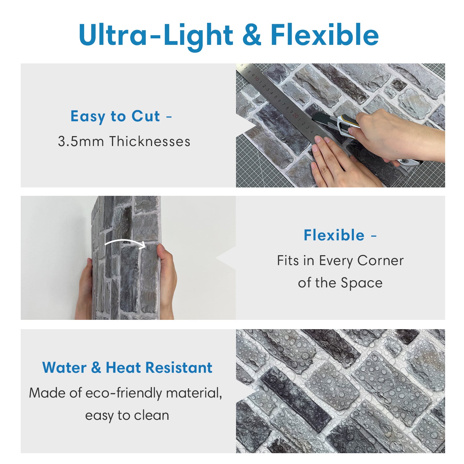 Stunning 3D Embossed Texture: Realistic 3D surfaces perfectly simulate various real decorative tiles and are lightweight and flexible.