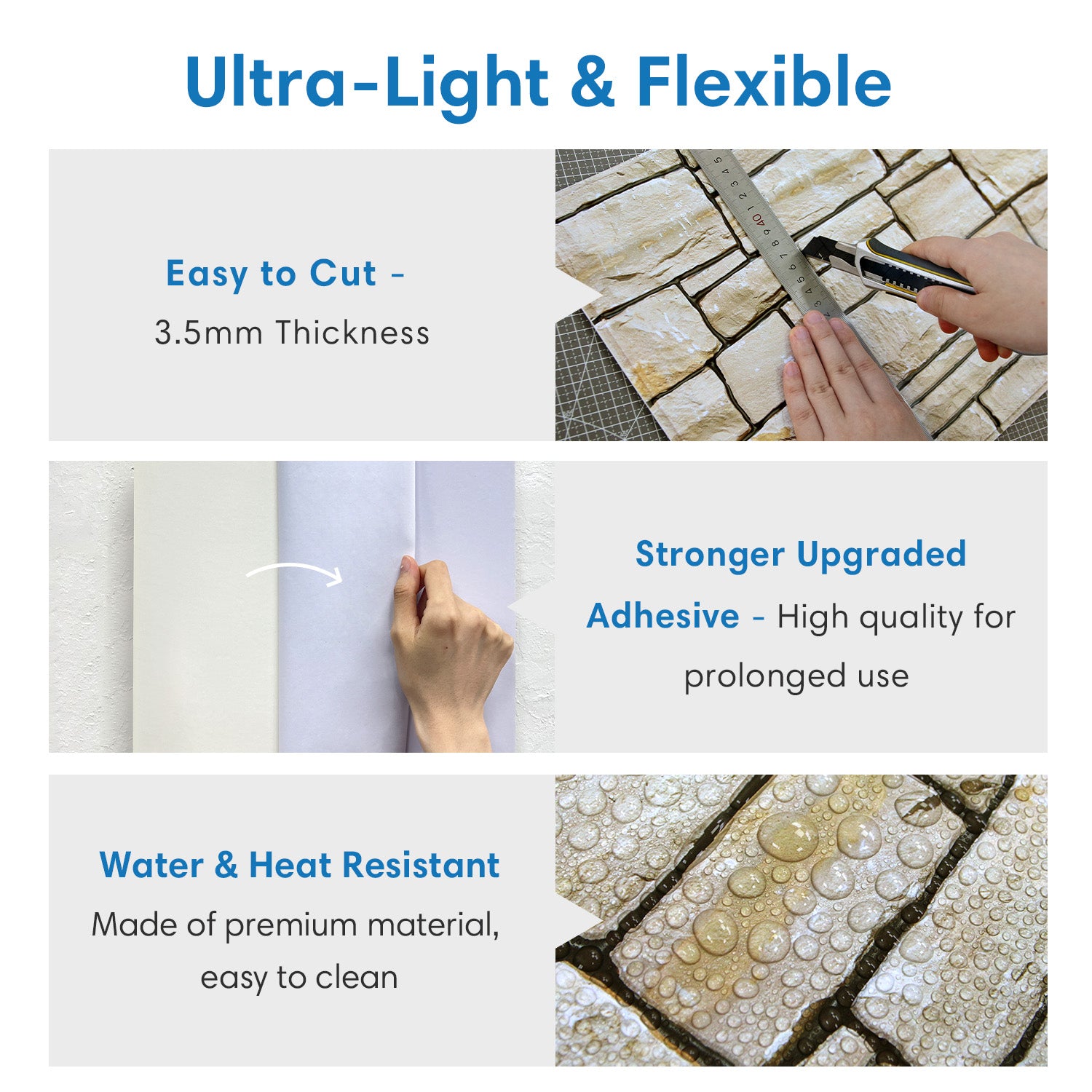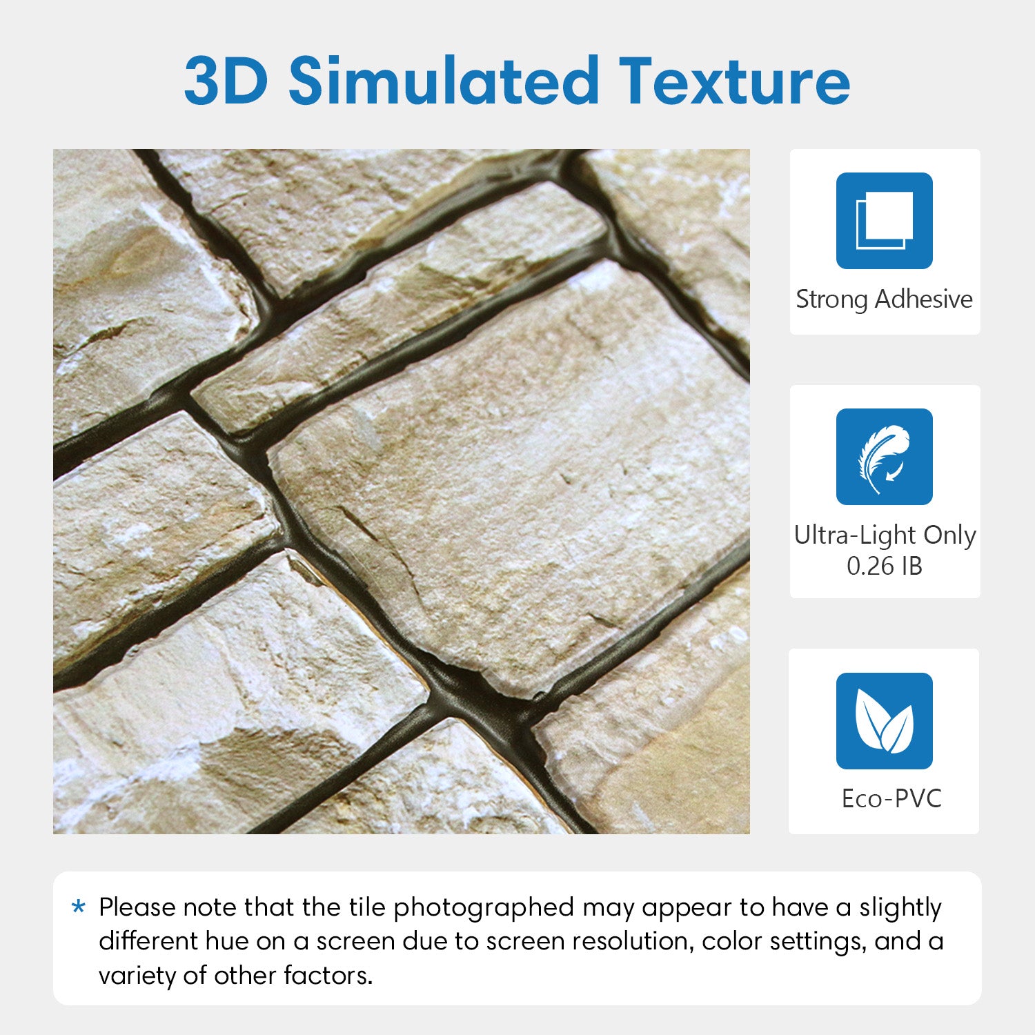 - Stunning 3D Embossed Texture: Realistic 3D surfaces perfectly simulate various real decorative tiles and are lightweight and flexible.