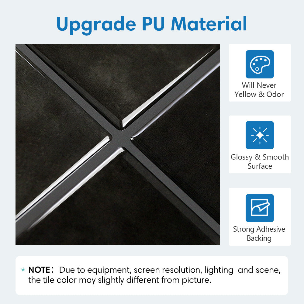 - High-Quality And Durable: Crafted with eco-friendly premium PU glue that won't emit dioxins or yellow with time, the tile is formulated with a stronger adhesive for a secure fit on smooth and lightly textured surfaces.