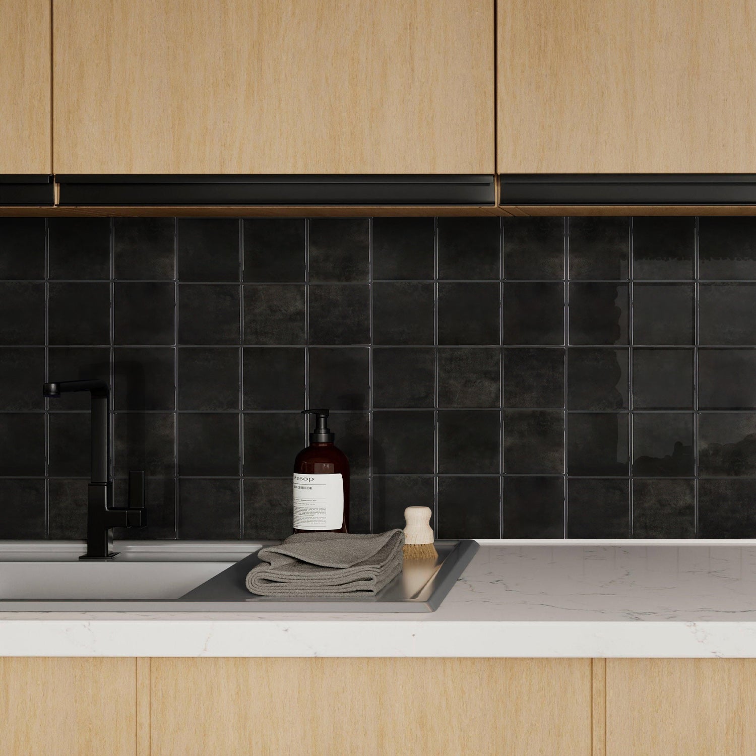 Transform your kitchen or bathroom with Comstickc® Square Peel and Stick Backsplash - Black Thicker Design for a bold, modern upgrade.