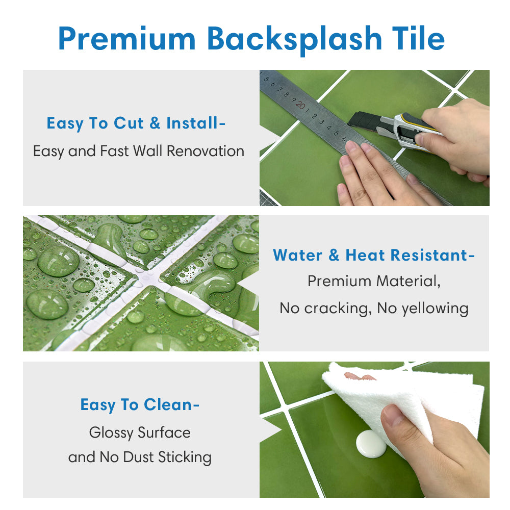 - Waterproof & Heat-Resistant: Withstanding water and heat-resistance, it's ideal for kitchen and bathroom backsplashes.